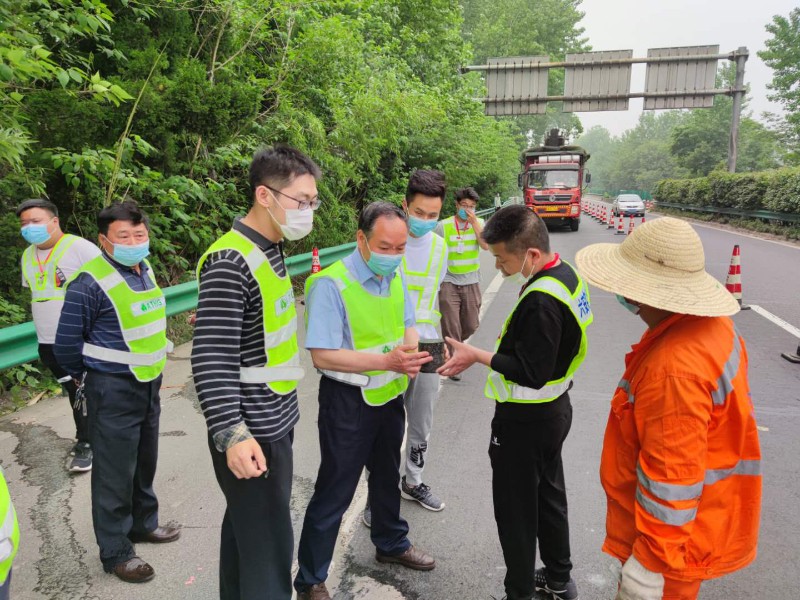 5月7日下午,安徽省交控集團養(yǎng)護管理中心主任張尤平、養(yǎng)管分中心副主任陶明路、分管安全工程師舒陽一行到2019-2021年度高速公路銑刨修復(fù)工程施工現(xiàn)場檢查指導(dǎo)工作。