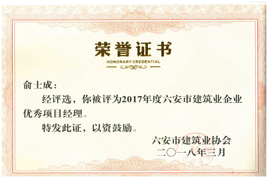 2017年度六安市建筑業(yè)企業(yè)優(yōu)秀項目經(jīng)理