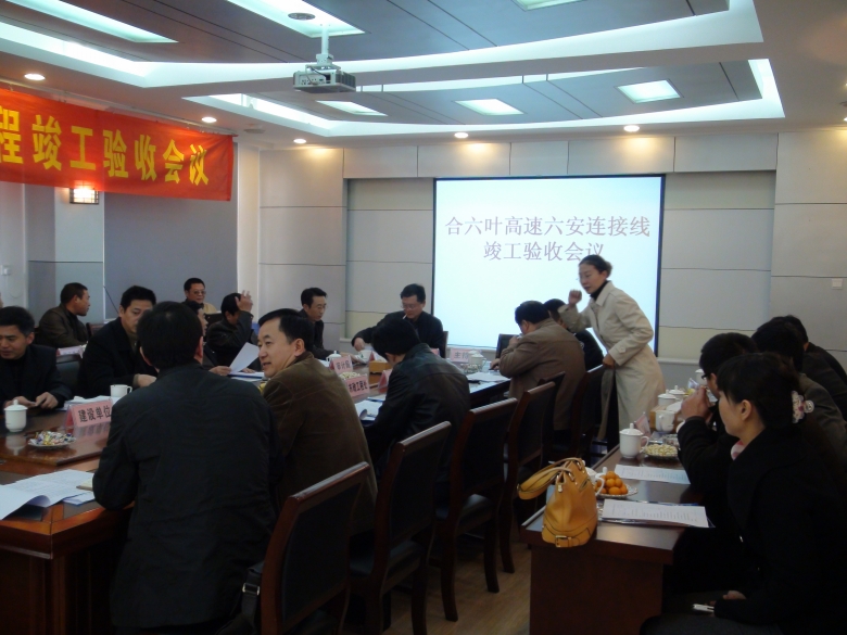 2010年12月11日,合六葉高速六安連接線竣工驗(yàn)收會議在交通實(shí)業(yè)公司召開,與會代表有市建委、市紀(jì)委監(jiān)察室、市城投公司、市交警支隊(duì)、市審計(jì)局、市財(cái)政局、市重點(diǎn)辦、市交通質(zhì)檢站、市公路局、市政工程處、市排水公司等相關(guān)單位領(lǐng)導(dǎo)。